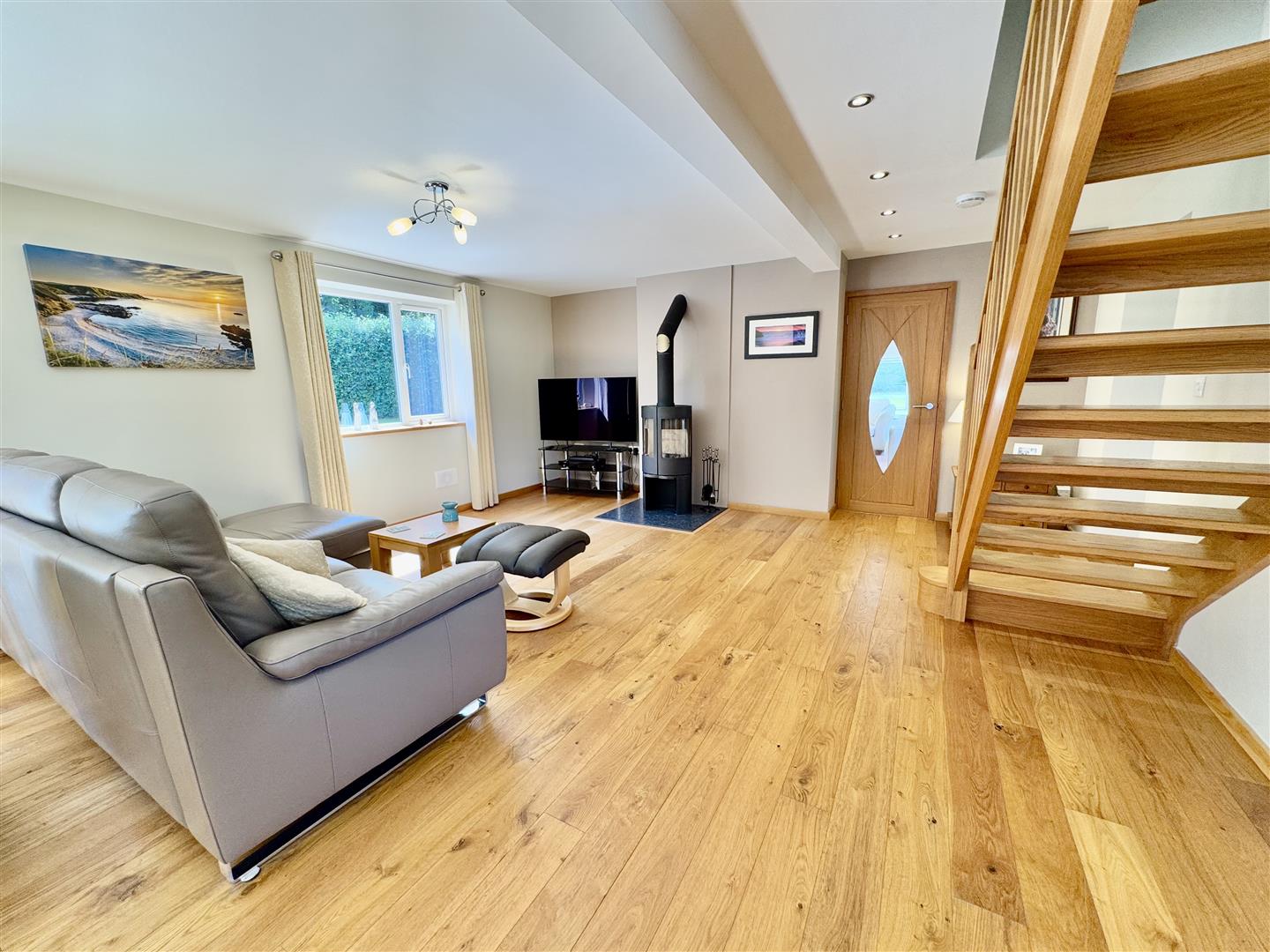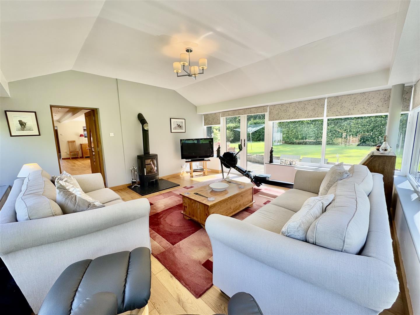 Multifuel woodburning stove. Patio doors to rear patio garden area. Radiator.