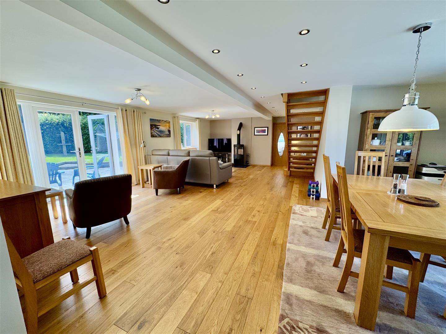Set within a generous plot, the property now offers spacious, light-filled interiors with a seamless flow between living areas. The heart of the home is a stunning open-plan living/dining/kitchen with high-spec fittings, and patio doors opening onto the patio garden - perfect for entertaining or relaxing. The kitchen has the benefit of a walk-in pantry, utility room, boot room & downstairs toilet. At the opposite end of the property, a separate sitting room provides a peaceful retreat. On the first floor, the principal bedroom enjoys the luxury of a walk-in wardrobe and an en-suite. Two further Bedrooms and Family Bathroom.